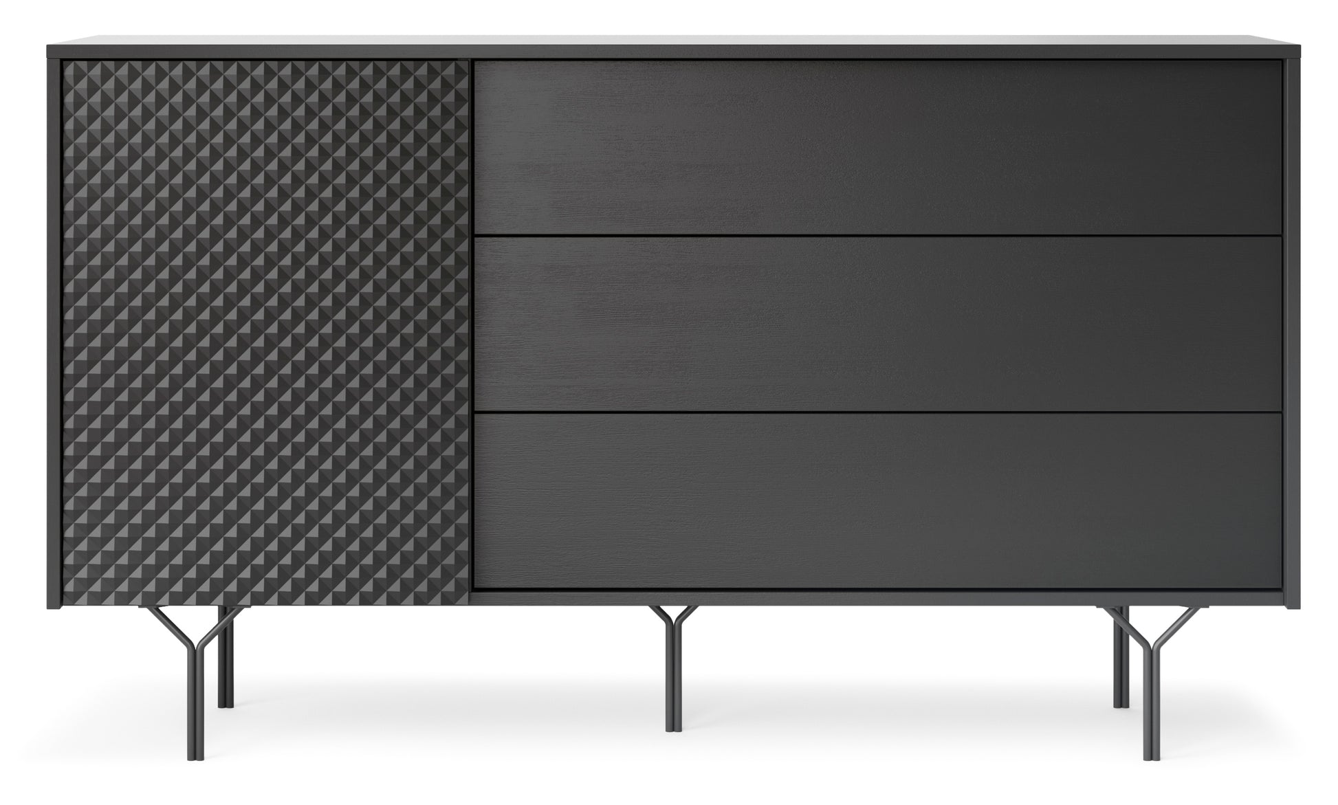 The Raven KSZ-144 Dresser is an elegant addition to any living room. With 1 door and 3 drawers, this black dresser provides ample storage space while adding a touch of sophistication to your home. The perfect blend of style and functionality.