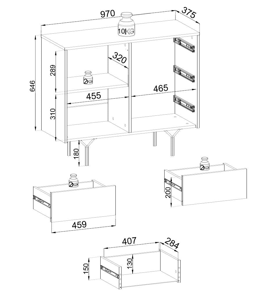 Maximize storage space with the Raven KSZ-97 Dresser. This elegant and sleek piece features 1 door and 3 drawers, providing ample room for all your living room essentials. Its smaller size makes it perfect for any space, while the black color adds a touch of sophistication. Upgrade your storage game today.